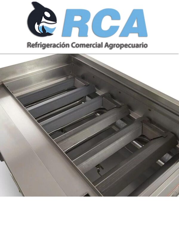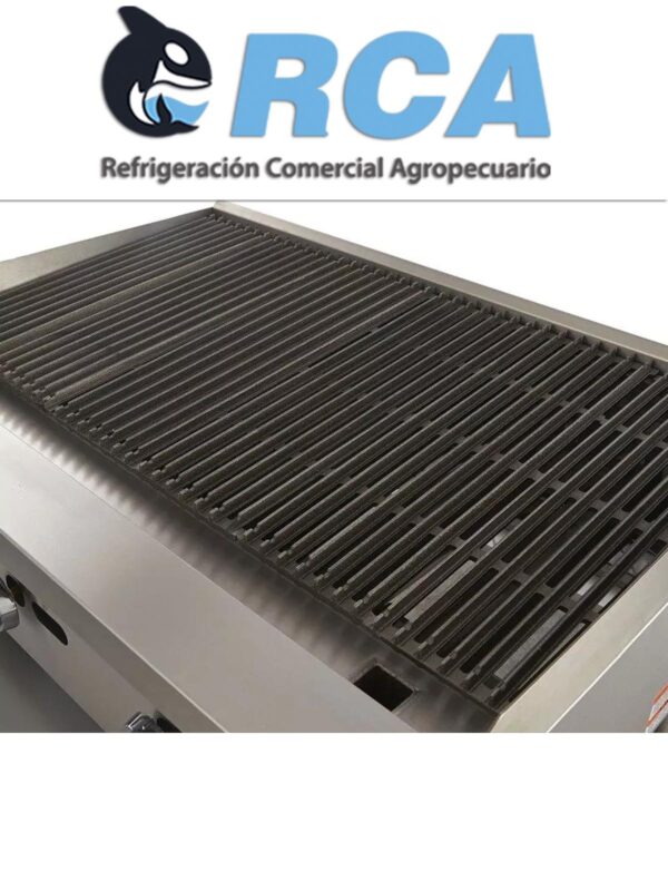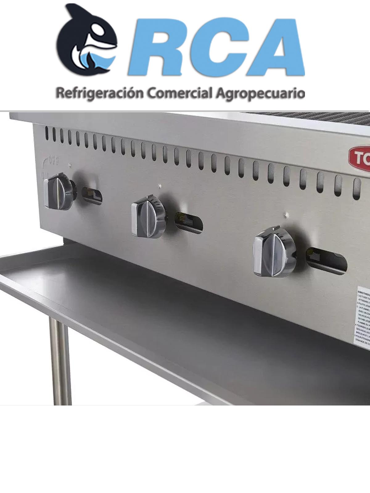 Asador de gas, construido en acero inoxidable tipo 430 para dar un mayor tiempo de vida. Fabricación modular para combinarlos con otros equipos de cocción y armar tu cocina ideal. 3 quemadores de acero inoxidable en forma de “U” que maximizan el flujo de calor Charola para residuos para facilitar la limpieza y el mantenimiento del equipo Parrillas fabricadas en hierro vaciado Perillas metálicas que cuentan con sistema de fijación brindando uso rudo y durabilidad.