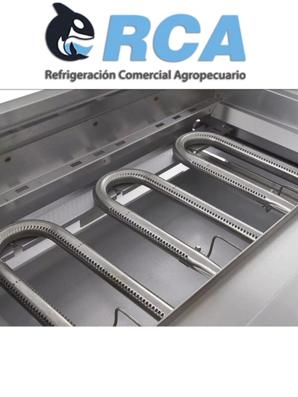 El asador Torrey cuenta con 3 quemadores comerciales fabricados en acero inoxidable en forma de “U”, estos quemadores maximizan el flujo de calor.