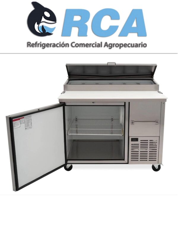 - Mesa fría para preparación de alimentos con 1 puerta, 6 insertos de 1/3 y mesa de granito.